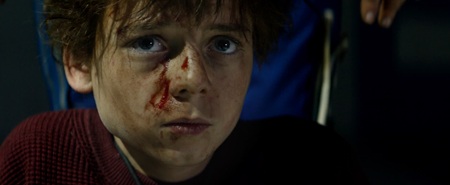 Meanwhile, Dr. Kelson (Ralph Fiennes) remains the custodian of his bone temple ossuary. During one of his outings to bring back the carcasses of the dead so they may have a final resting place and not be left to rot alone, he again encounters the powerful alpha he has nicknamed “Samson” (Chi Lewis-Parry). Stunning him with a morphine dart, something keeps the physician from killing the Rage Virus-infected behemoth. Instead, he treats the zombie’s wounds. There’s something different about Samson, a peculiarity that has Dr. Kelson wondering if there’s more going on behind the man’s eyes than a single-minded desire to rip off the heads of his victims and feast on their mutilated remains.